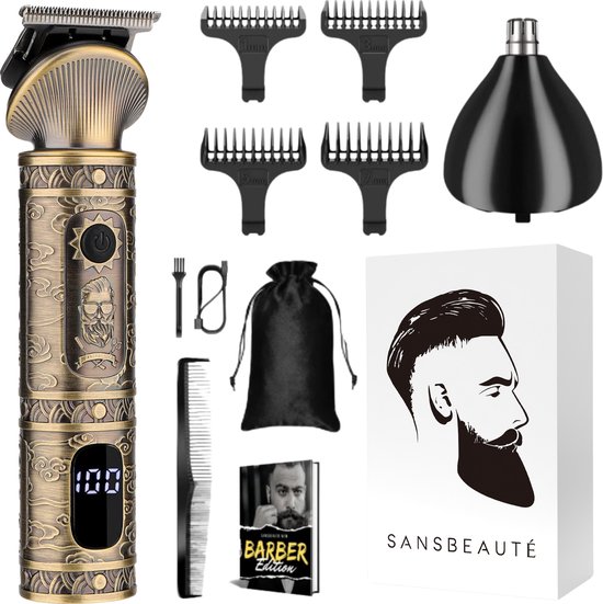 Met deze trimmer van Sansbeauté breng je je baard in model en je ontvangt ook een opzetstuk voor het trimmen van neushaar. De vier opzetkammen zorgen ervoor dat je baard- of lichaamshaar in de gewenste lengte trimt. Dit model heeft een krachtige accu en een tof en gedetailleerd ontwerp.