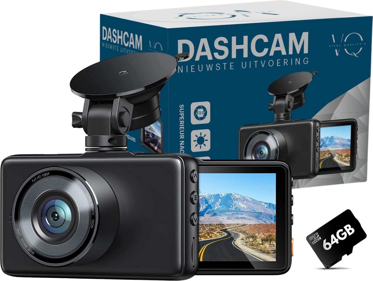 Deze dashboardcamera wordt geleverd met een 64 GB SD-kaart. Hierdoor hoef je je geen zorgen te maken over opslag. Verder valt dit model op vanwege zijn hoge kwaliteit en betrouwbaarheid. Zo slaat de dashcam automatisch beelden op bij een aanrijding. Verder is dit model is voorzien van handige functies zoals G-sensoren, parkeerbewaking, loop recording en bewegingsdetectie.