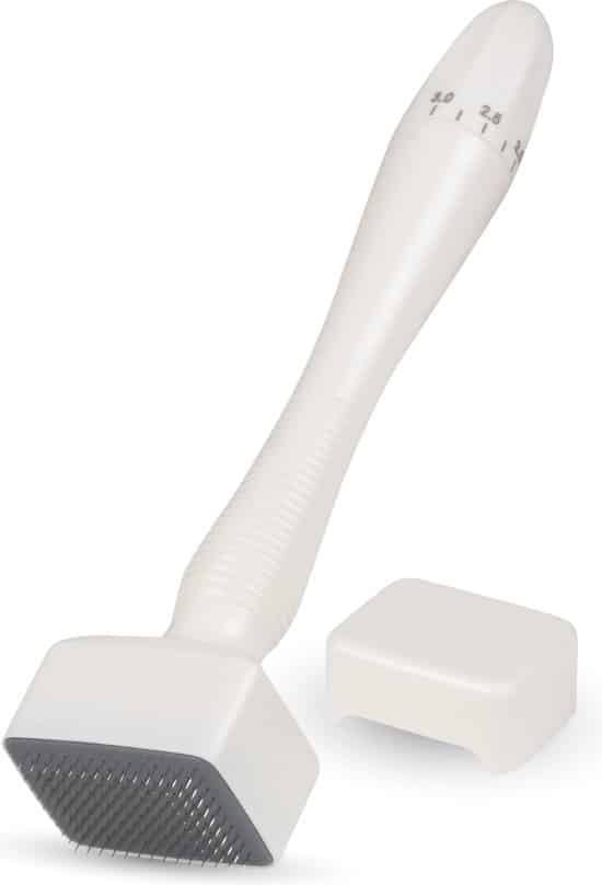 Als je op zoek bent naar een vriendelijk geprijsde dermaroller, raden we je dit model van Lumivéra aan. De roller heeft 540 naaldjes van 0,25 millimeter. Het dringt dus iets minder diep in de huid door dan sommige andere modellen, maar is uiterst geschikt voor beginners. De naalden zijn hoogwaardig, gemaakt van titanium.