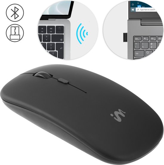 Deze stille bluetooth muis van iMoshion is geschikt voor zowel links- als rechtshandigen. Dit model heeft een batterijduur van 45 uur, op te laden via USB-kabel en is comfortabel in gebruik. Naast bluetooth koppel je dit model ook via een USB-A adapter.