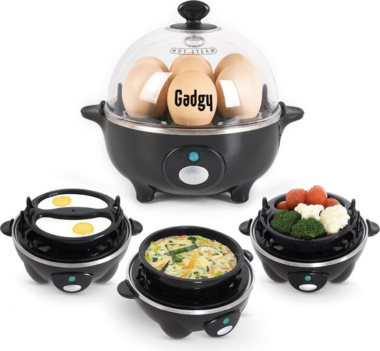 Na een grondige test van de beste eierkokers van 2026, springt de eierkoker van Gadgy eruit als de Beste Algemene Keuze. Deze eierkoker verzekert altijd perfect gekookte eieren. Het houdt moeiteloos 7 eieren tegelijk warm, ideaal voor gezinnen. De automatische buzzer neemt al het gedoe van timers weg. Bovendien is het compact en makkelijk op te bergen. Het voert verschillende taken uit zoals koken, pocheren, roerei maken, omeletten bereiden en stomen. Schoonmaken is eenvoudig dankzij de vaatwasbestendige losse delen en de meegeleverde maatbeker zorgt voor precieze waterdosering.