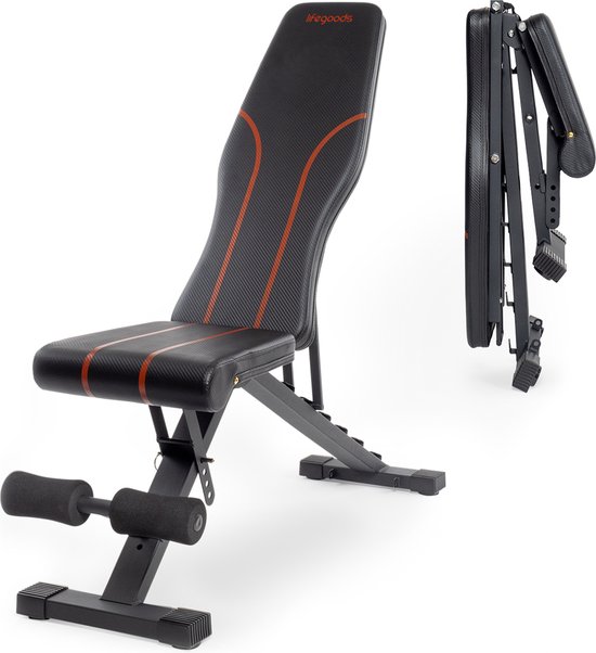 Deze halterbank van LifeGoods is ideaal als je op zoek bent naar een bank die eenvoudig te verplaatsen en op te bergen is. Het compacte en inklapbare ontwerp maakt het gebruik erg praktisch.