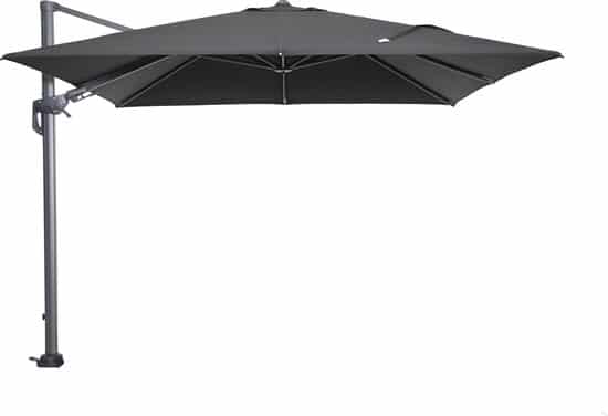 Deze parasol is verder volledig draaibaar en in hoogte verstelbaar. Het scherm kan zonder kracht gekanteld worden om de veranderende hoek van de zon te volgen. Een extra duurzame en sfeervolle parasol dus, die in drie subtiele grijstinten te bestellen is. Zeker zijn geld waard.
