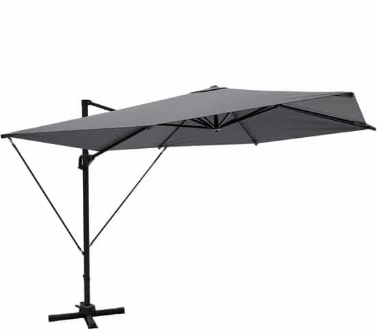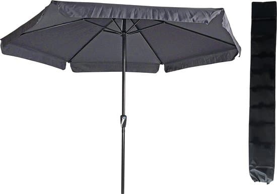 Wij werden ook enthousiast van de 15 kleurtinten waarin je dit model kan bestellen. Helaas blijken dat allemaal varianten van grijs, zwart, wit en beige te zijn - een beetje kleur in je tuin krijgen met een grote parasol is nog niet zo makkelijk! Afgezien daarvan: dit apparaat verzorgt voor een lage prijs een grote schaduwplek op je terras, op je balkon of in je tuin. Een degelijke keuze als je vooral het formaat van je nieuwe parasol belangrijk voor je is.