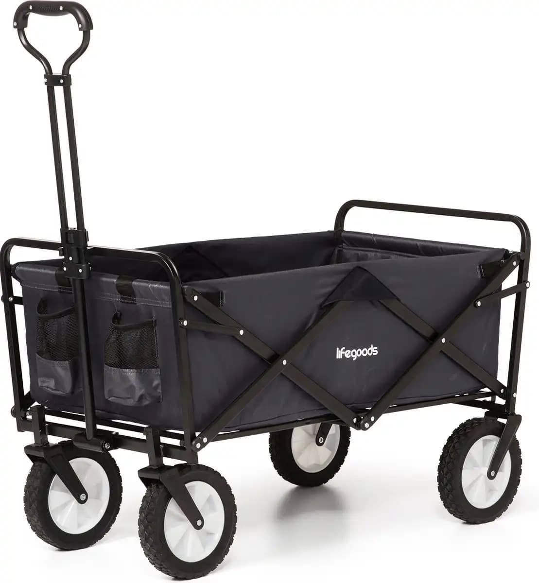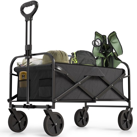 - Handigheid: een inklapbare bolderkar is gemakkelijk te transporteren en op te bergen. Je kunt het compact opvouwen en in de kofferbak van je auto, in de garage of zelfs in een kast bewaren. Dit maakt het handig voor uitstapjes, boodschappen doen, picknicks en andere activiteiten.