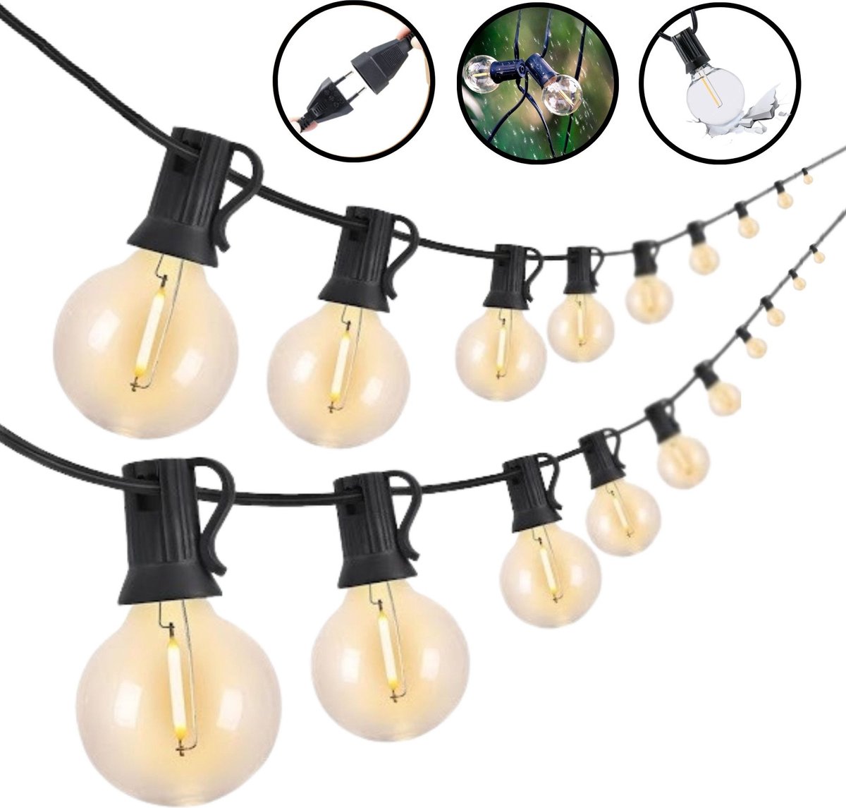 - Lange levensduur: dankzij het gebruik van hoogwaardige materialen, gaan buitenlichtsnoeren lang mee. Je investeert dus in een product dat je tuin voor vele jaren van sfeer voorziet.