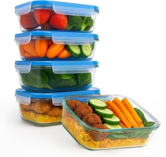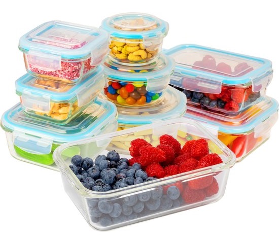 - Glazen meal prep bakjes: zijn duurzaam en veilig voor gebruik in de magnetron, oven en vaatwasser. Ze zijn geschikt voor het opslaan van warme maaltijden en houden de smaak van voedsel goed.