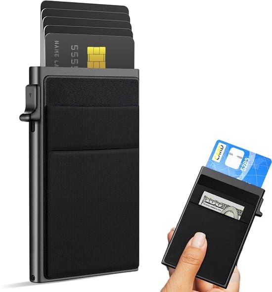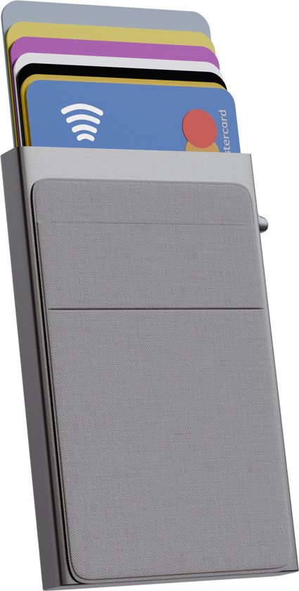 Deze pasjeshouder van Nuvance is een uitstekende keuze bij een beperkter budget. Dit uitschuifbare model is uitschuifbaar en biedt RFID-bescherming. In totaal is er ruimte voor tien pasjes.