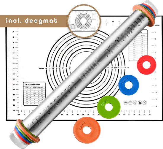 De Baulk® bakmat met verstelbare RVS deegroller is perfect voor iedereen die een luxe bakervaring zoekt. Met een antikleefmat van hoogwaardige siliconen en een verstelbare deegroller van roestvrij staal, zorgt deze set voor een moeiteloze en nauwkeurige bereiding van al je favoriete deegwaren.