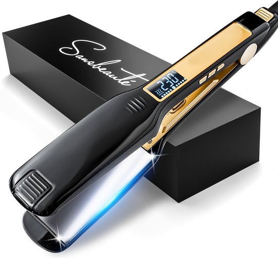 Deze professionele stijltang van Sansbeauté heeft een snelle opwarmtijd en is ideaal om krullend haar steil te maken. Er zijn 31 instelbare warmtegraden en de negatieve ionenfunctie voorkomt pluizig of beschadigd haar. Dit model is hoogwaardig met titanium platen.