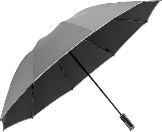 Dankzij de reflecterende streep is deze stormparaplu van Infinity Goods extra veilig in gebruik, zeker als je in het donker onderweg bent. Dit model is bestand tegen windstoten van maar liefst 140 kilometer per uur. Eenmaal opgevouwen is de paraplu compact.