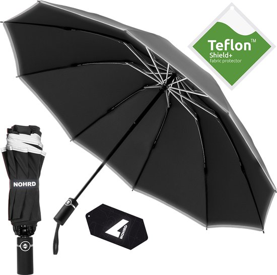 Als je een opvouwbare stormparaplu zoekt, bijvoorbeeld voor in je tas, ga je voor dit model van Nohrd. We vonden de paraplu licht en compact, wat meenemen een stuk makkelijker maakt. Dit doe je in de meegeleverde beschermhoes.