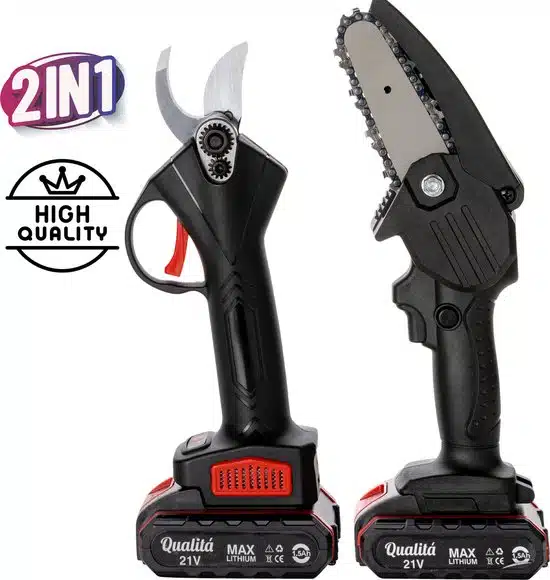 - 2-in-1 functie: snoeischaar en mini kettingzaag