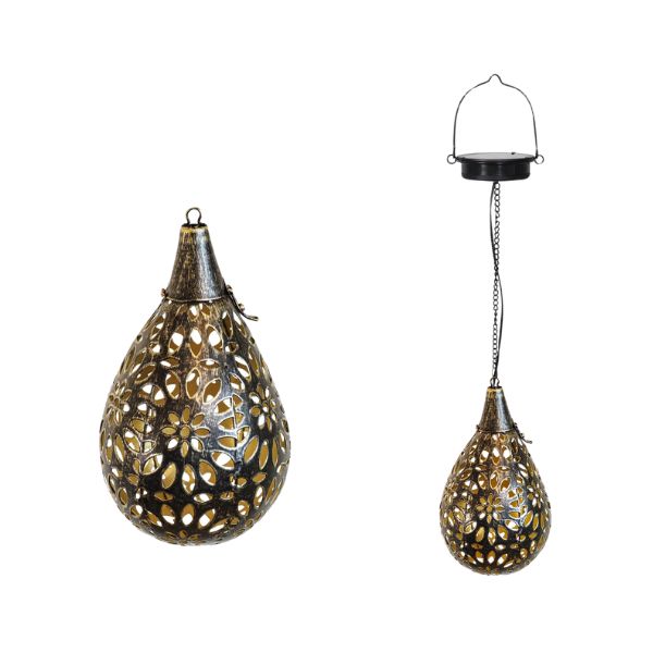 De gebloemde perforatie in het metaal samen met de goudkleur aan de binnenkant creëert een sfeervolle ambiance. Ze zijn eenvoudig te bedienen; je zet de schakelaar op 'aan', laat de batterij overdag opladen en de lampen gaan automatisch 8 uur lang aan zodra het donker wordt.