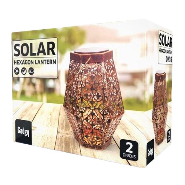 De Gadgy Solar Hexagon is een set van twee koperkleurige tuinlampen, die zowel overdag als 's nachts je tuin verrijken met hun schitterende lichteffect en unieke patroon. Ze staan ontzettend leuk op de tuintafel of in de loungehoek. Hang je ze liever op? Dit kan ook, doordat er een hengsel aan zit.