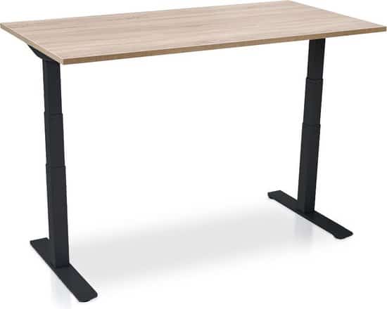 Op zoek naar een zit sta bureau met een handige geheugenfunctie? Met dit elektrisch verstelbare model sla je tot vier favoriete standen op. Het is gemaakt van hoogwaardige materialen (stalen poten en eiken melamine blad), eenvoudig te monteren en biedt garantie tot vijf jaar.